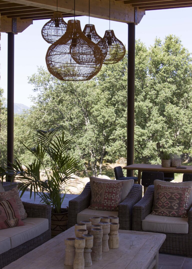 Fibras naturales, mobiliario de rattan, vistosos kilim y antiguos bancos de Indonesia le conceden un look viajero, bohemio y chic que lo hacen responsable de esta sensación de confort y bienestar de la vida al aire libre.